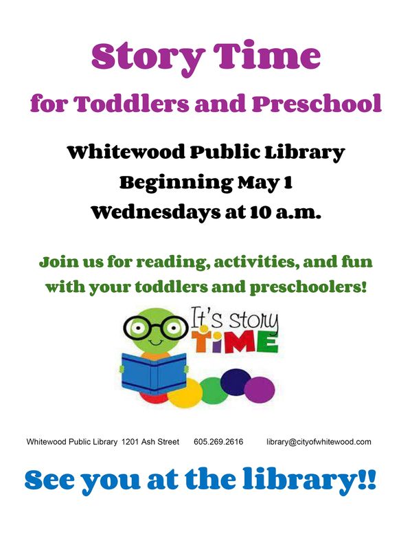 Library Director Deb Terhune Co-Librarians Olyn Smith, Donna Wilson & Racine Morgan Phone: (605) 269-2616 E-mail: library@cityofwhitewood.com